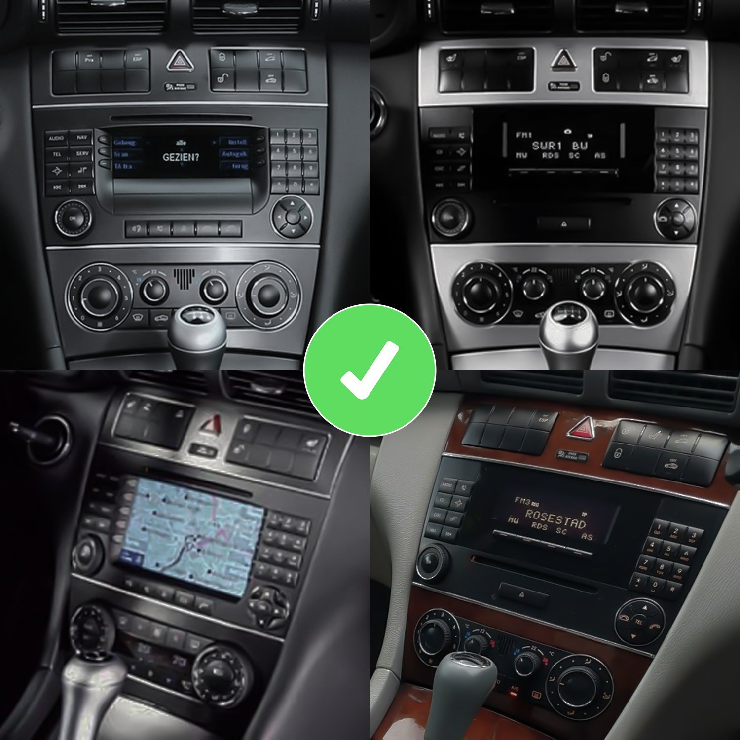 **Autoradio Android CarPlay Bluetooth Navigation RDS GPS** pour **Mercedes C-Class W203 Facelift**